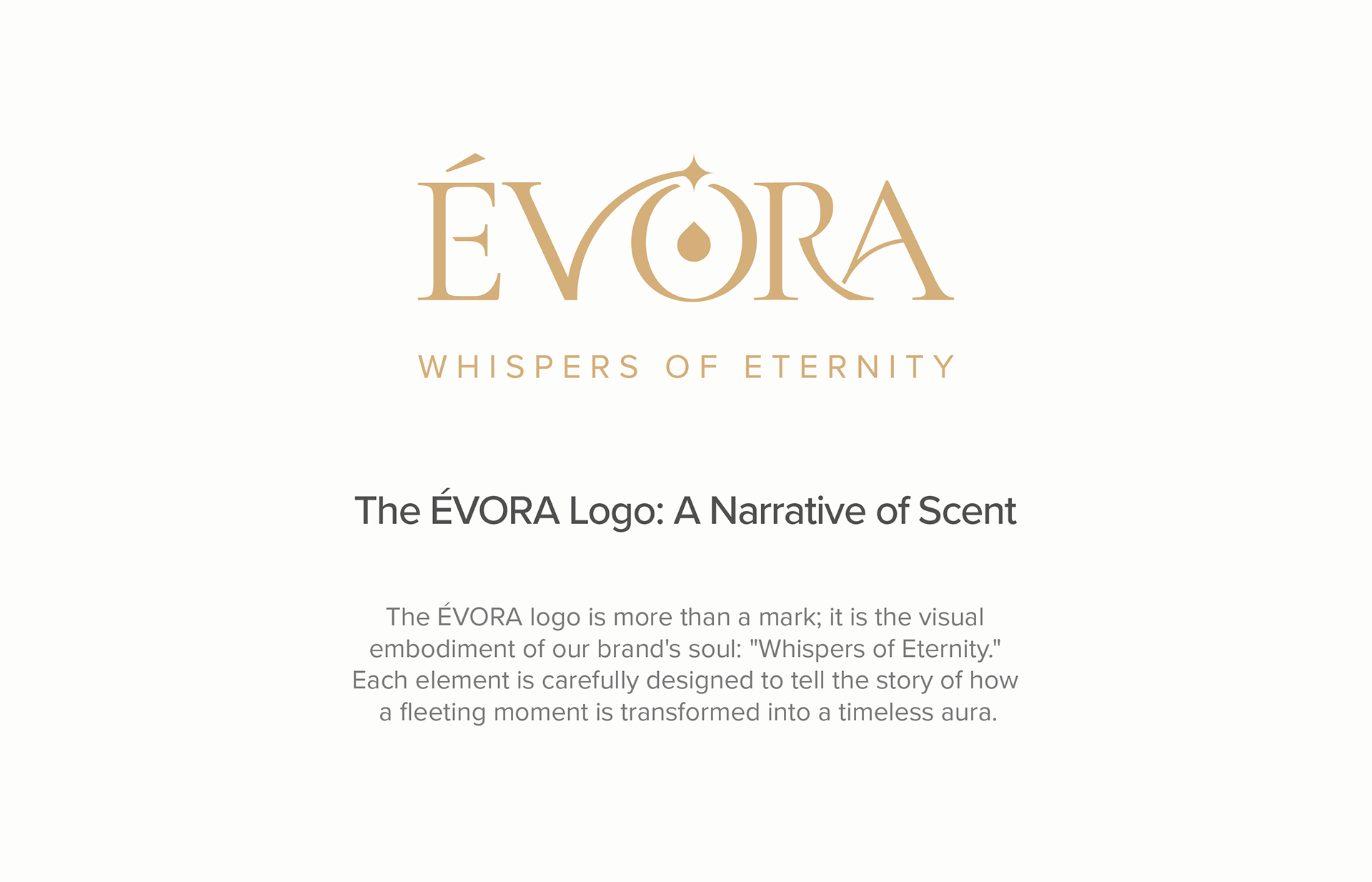 The ÉVORA logo is more than a mark it is the embodiment of “Whispers of Eternity.” Every detail has been crafted to reflect a journey: from a spark of emotion, to an essence captured, to an aura shared with the world. It symbolizes our promise to transform fleeting feelings into timeless elegance, creating a visual identity that is as refined and enduring as the fragrance itself.